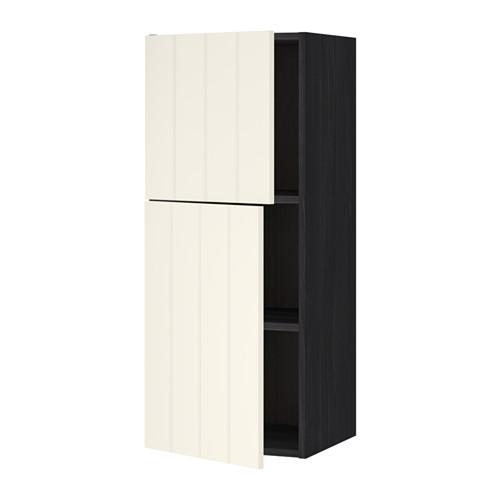 МЕТОД Навесной шкаф с полками/2дверцы - под дерево черный, Хитарп белый с оттенком, 40x100 см