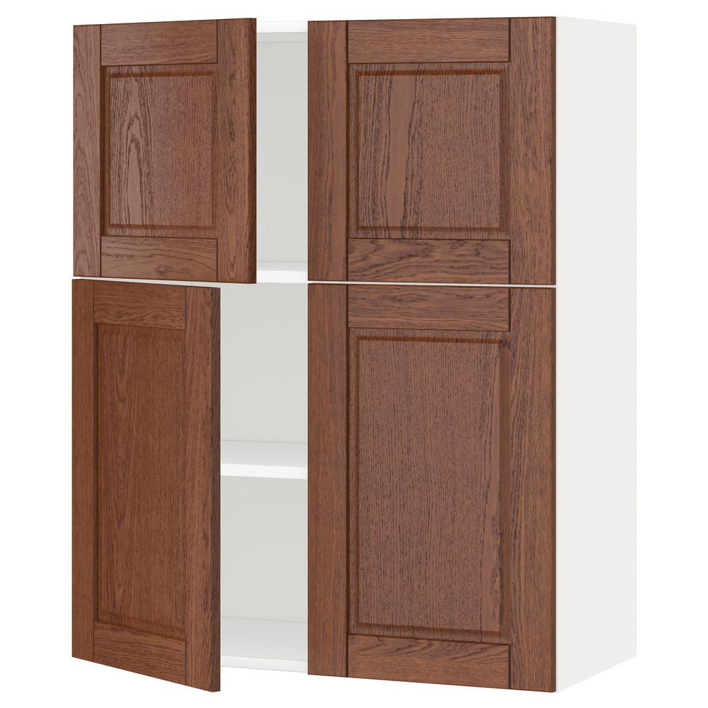 МЕТОД Навесной шкаф с полками/4дверцы - белый, Филипстад коричневый