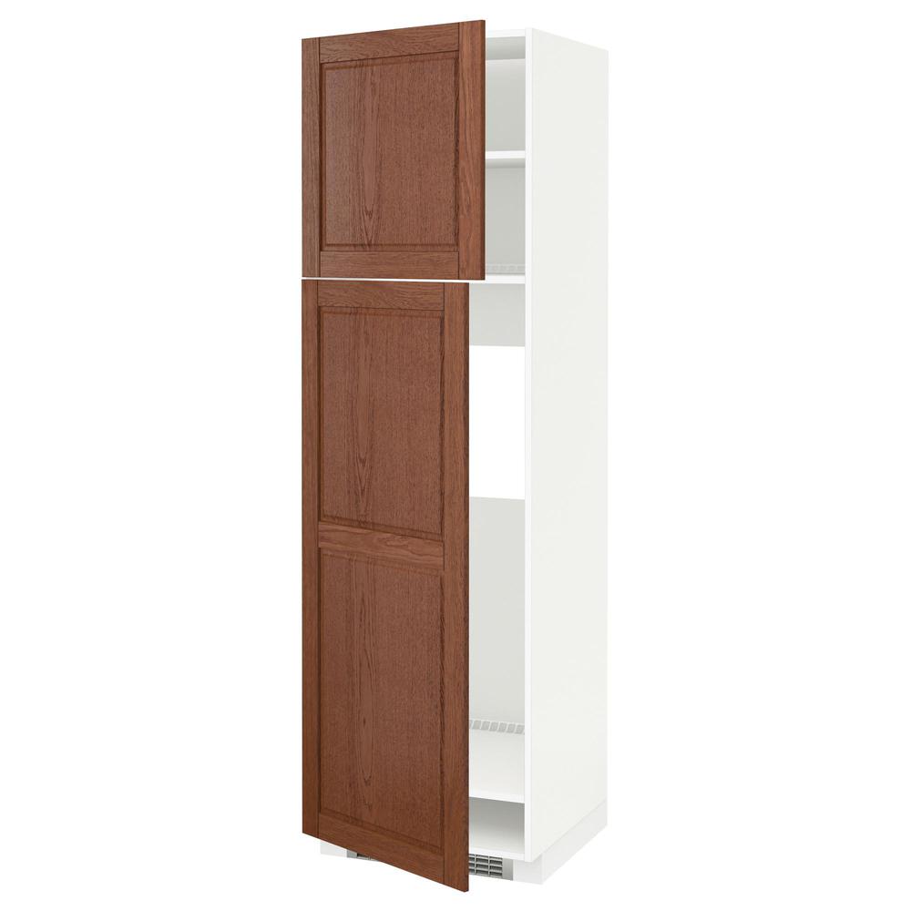 МЕТОД Высокий шкаф д/холодильника/2дверцы - белый, Филипстад коричневый, 60x60x200 см