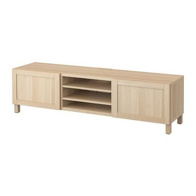 БЕСТО Тумба д/ТВ с ящиками - Ханвикен под беленый дуб, направляющие ящика, плавно закр