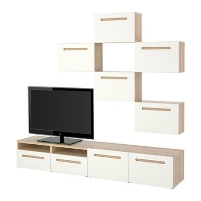 БЕСТО Шкаф для ТВ, комбинация - под беленый дуб/Марвикен белый, направляющие ящика, плавно закр