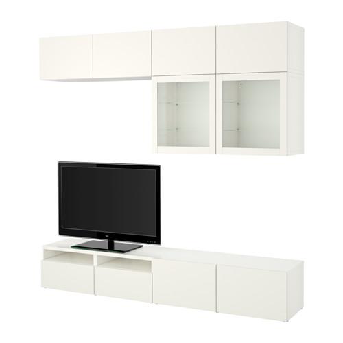 БЕСТО Шкаф для ТВ, комбин/стеклян дверцы - Лаппвикен/Синдвик белый прозрачное стекло, направляющие ящика,нажимные
