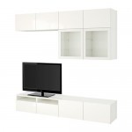 БЕСТО Шкаф для ТВ, комбин/стеклян дверцы - белый/Сельсвикен глянцевый/белый прозрачное стекло, направляющие ящика, плавно закр