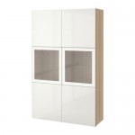 БЕСТО Комбинация д/хранения+стекл дверц - под беленый дуб/Сельсвикен глянцевый/белый матовое стекло