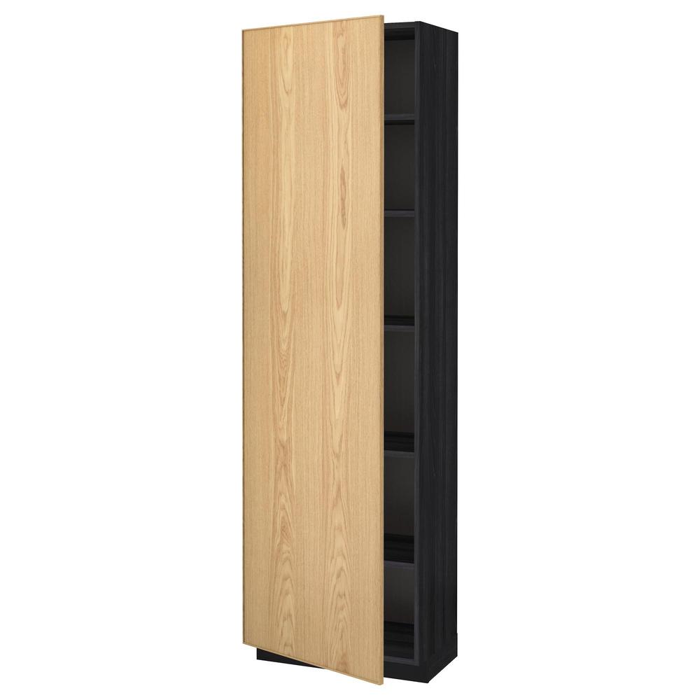 МЕТОД Высок шкаф с полками - под дерево черный, Экестад дуб, 60x37x200 см