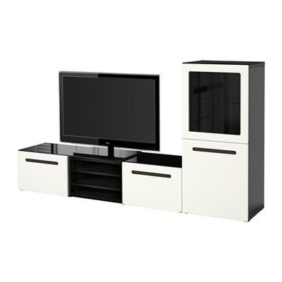 БЕСТО Шкаф для ТВ, комбин/стеклян дверцы - направляющие ящика, плавно закр, черно-коричневый/Марвикен белый прозрачное стекло