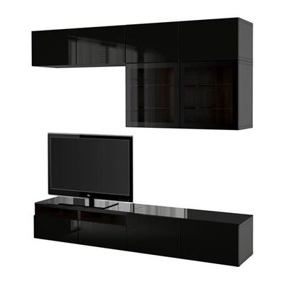 БЕСТО Шкаф для ТВ, комбин/стеклян дверцы - направляющие ящика,нажимные, черно-коричневый/Сельсвикен глянцевый/черный прозрачное стекло