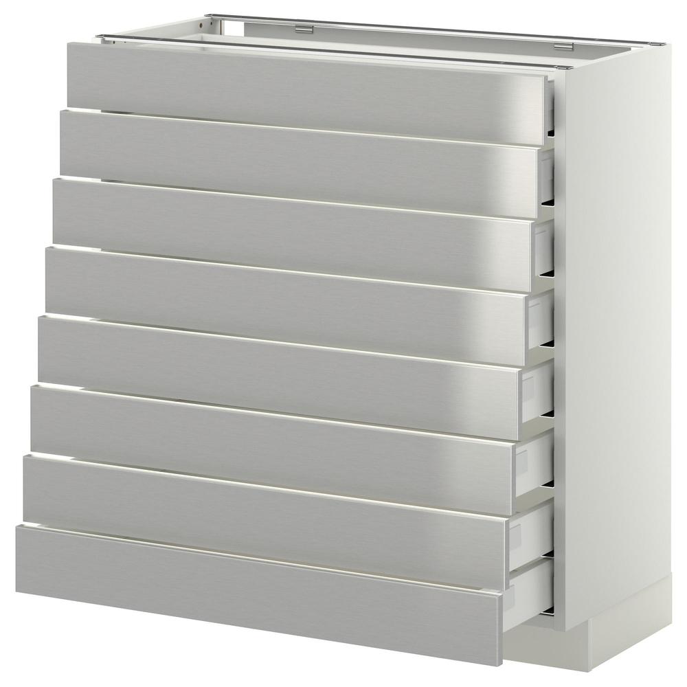 МЕТОД / МАКСИМЕРА Наполн шкаф 8 фронт/8 низк ящиков - белый, Гревста нержавеющ сталь, 80x37 см