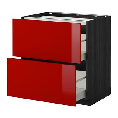 МЕТОД / МАКСИМЕРА Напольн шкаф/2фронт пнл/3ящика - 80x60 см, Рингульт глянцевый красный, под дерево черный