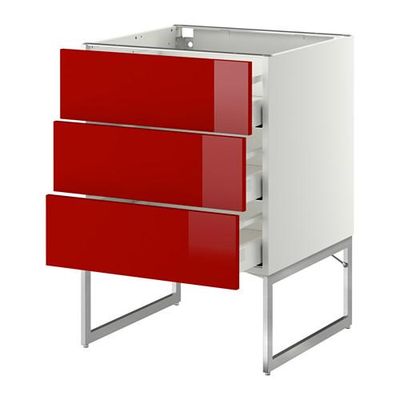 МЕТОД / МАКСИМЕРА Нплн шк 3 фрнт/3 средн ящика - 60x60x60 см, Рингульт глянцевый красный, белый