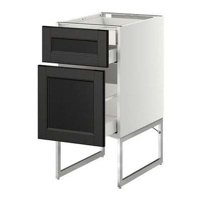 МЕТОД / МАКСИМЕРА Напольн шкаф 2фронт пнл/2низ/1вс ящ - 40x60x60 см, Лаксарби черно-коричневый, белый