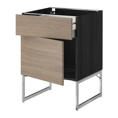 МЕТОД / МАКСИМЕРА Напольный шкаф с ящиком/дверью - 60x60x60 см, Брокхульт под грецкий орех светло-серый, под дерево черный