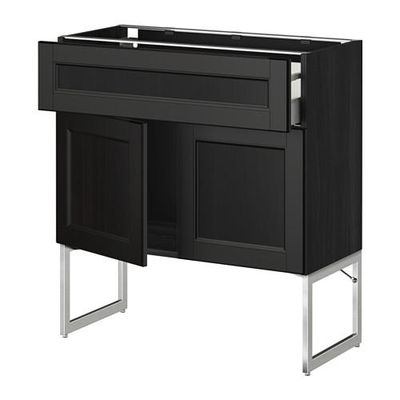 МЕТОД / МАКСИМЕРА Напол шкаф/полки/ящик/2двери - 80x37x60 см, Лаксарби черно-коричневый, под дерево черный