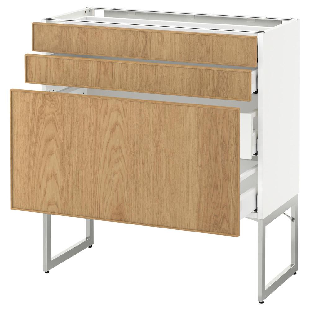 МЕТОД / МАКСИМЕРА Напольн шкаф 3фронт пнл/2низ/2ср ящ - белый, Экестад дуб, 80x37x60 см