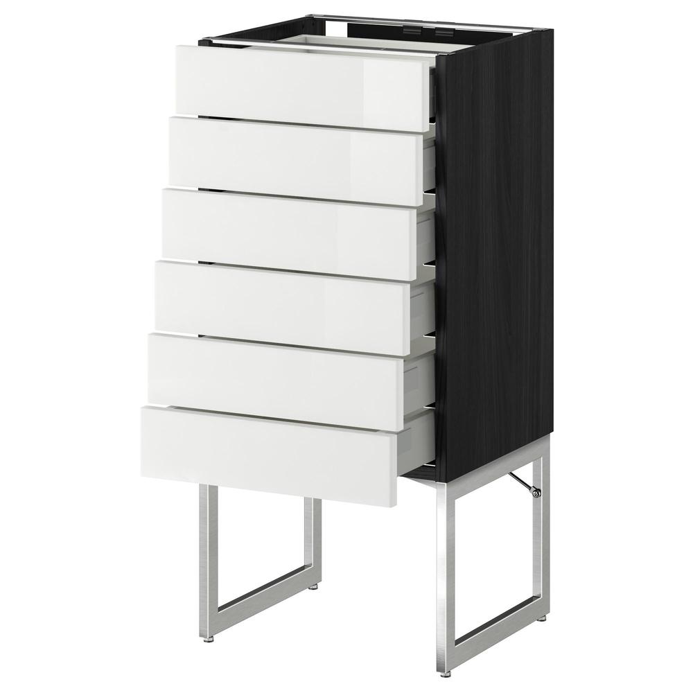 МЕТОД / МАКСИМЕРА Напольн шкаф 6фронт пнл/6 низ ящ - под дерево черный, Рингульт глянцевый белый, 40x37x60 см