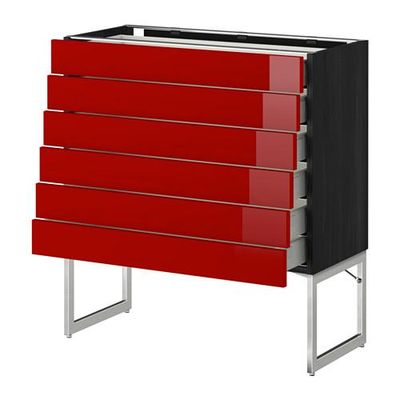 МЕТОД / МАКСИМЕРА Напольн шкаф 6фронт пнл/6 низ ящ - 80x37x60 см, Рингульт глянцевый красный, под дерево черный