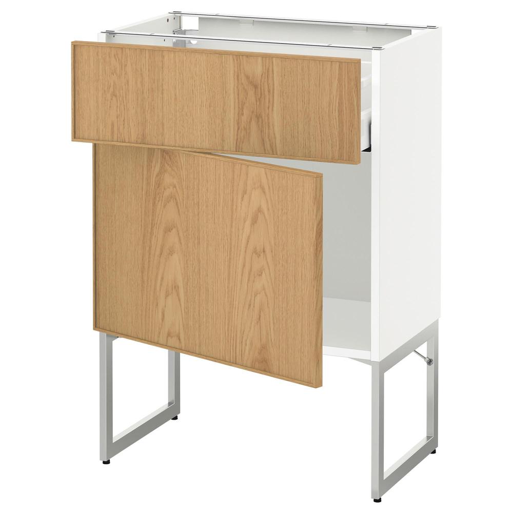 МЕТОД / МАКСИМЕРА Напольный шкаф с ящиком/дверью - белый, Экестад дуб, 60x37x60 см