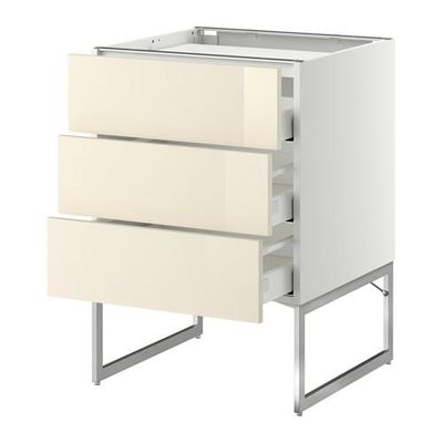 МЕТОД / МАКСИМЕРА Напольн шкаф/3фронт пнл/3ящика - 60x60x60 см, Рингульт глянцевый кремовый, белый
