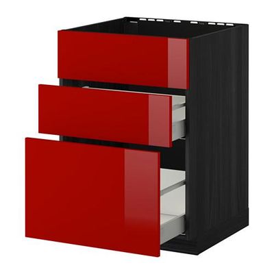 МЕТОД / МАКСИМЕРА Напольн шк п-мойку+3фрнт пнл/2ящ - 60x60 см, Рингульт глянцевый красный, под дерево черный
