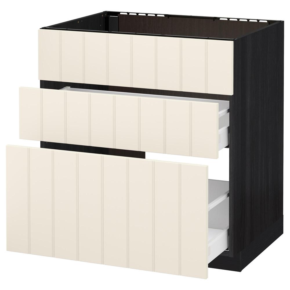 МЕТОД / МАКСИМЕРА Напольн шк п-мойку+3фрнт пнл/2ящ - под дерево черный, Хитарп белый с оттенком, 80x60 см