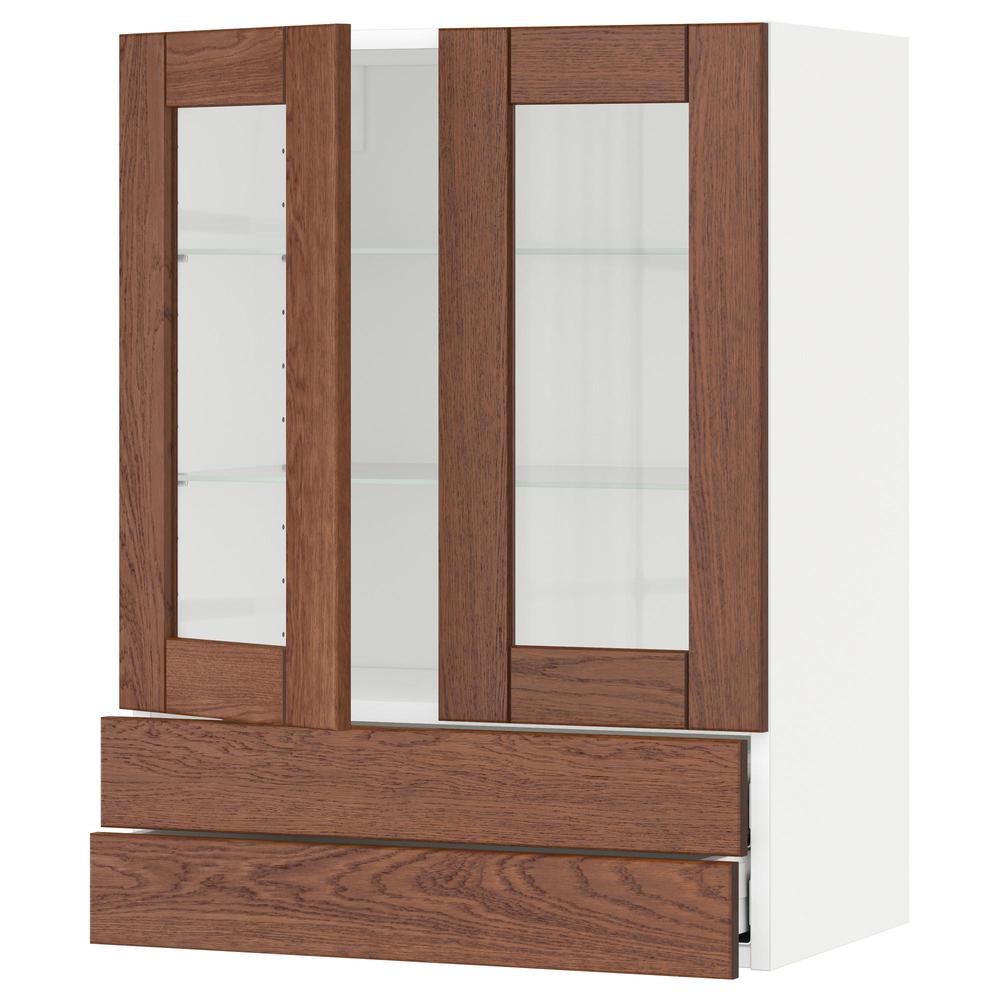 МЕТОД / МАКСИМЕРА Навесной шкаф/2 стек дв/2 ящика - белый, Филипстад коричневый, 60x80 см