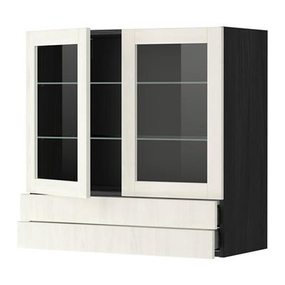 МЕТОД / МАКСИМЕРА Навесной шкаф/2 стек дв/2 ящика - 80x80 см, Росдаль белый ясень, под дерево черный