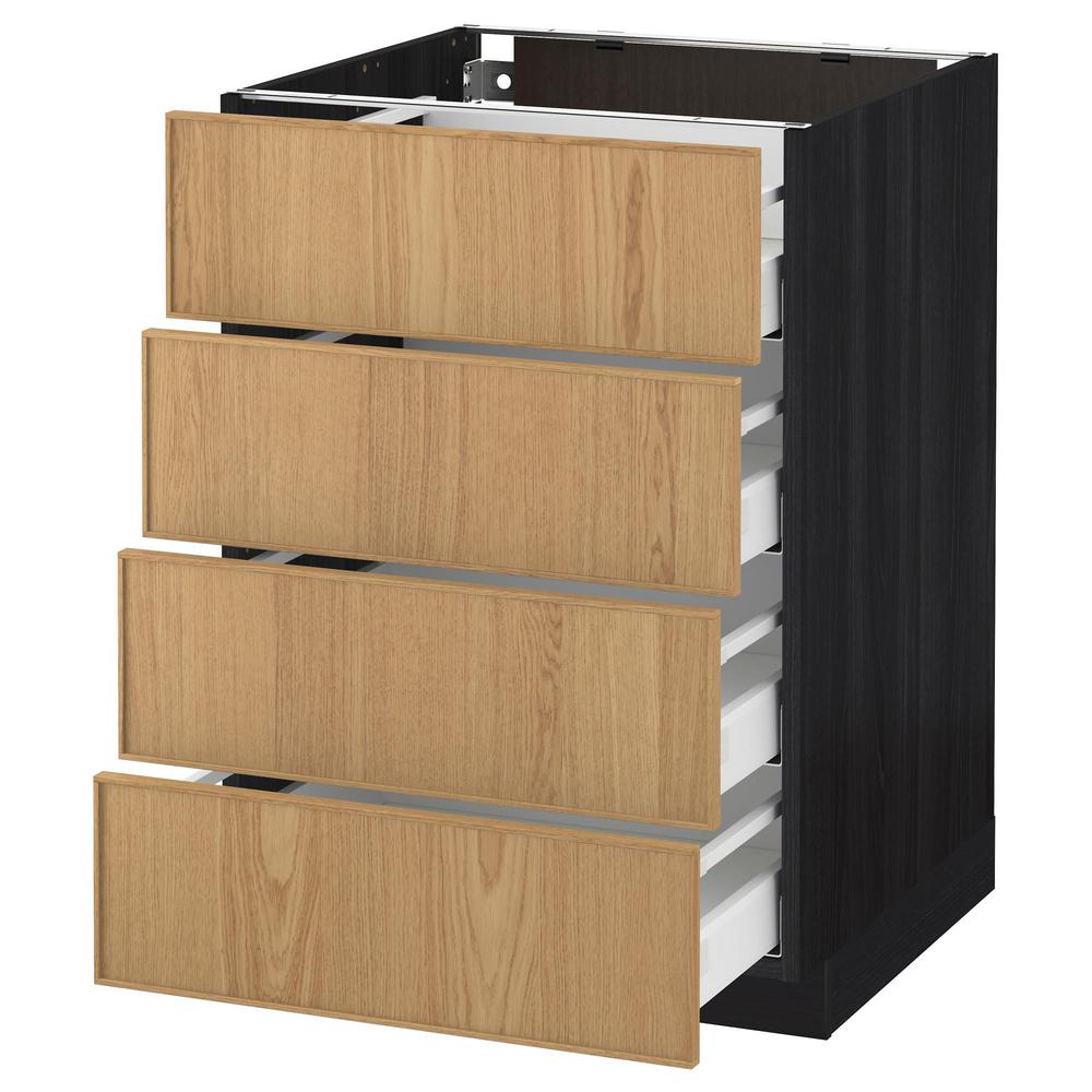 МЕТОД / МАКСИМЕРА Напольн шкаф 4 фронт панели/4 ящика - под дерево черный, Экестад дуб, 60x60 см 0.0/5 оценка (0 голосов)