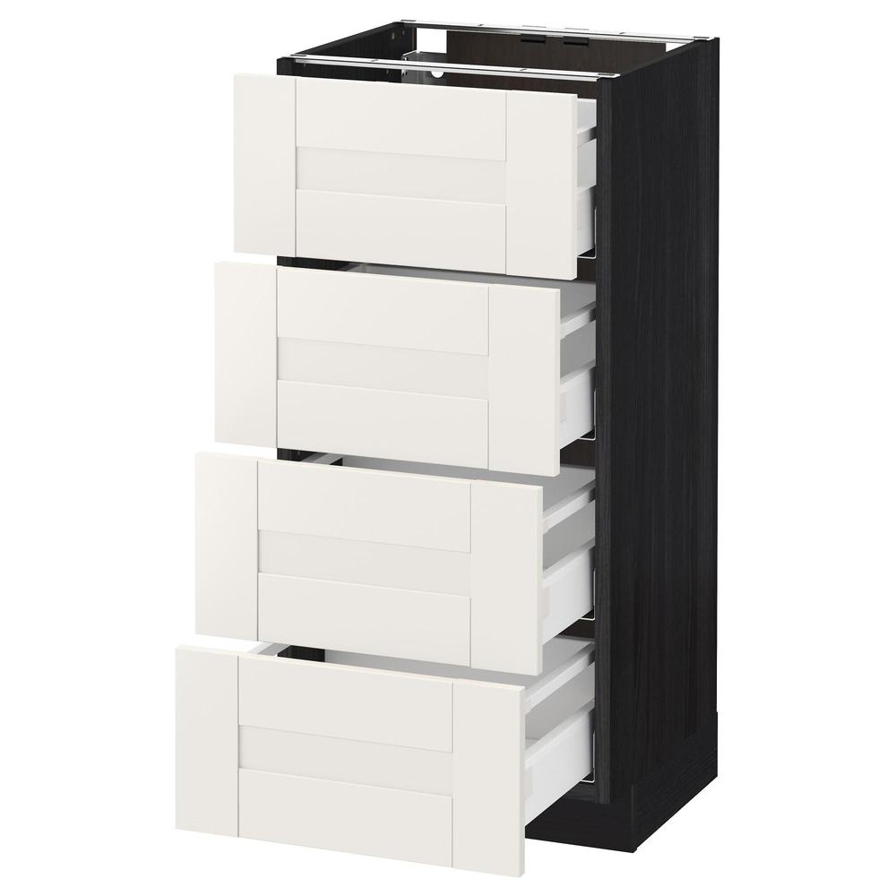 МЕТОД / МАКСИМЕРА Напольн шкаф 4 фронт панели/4 ящика - под дерево черный, Сэведаль белый, 40x37 см