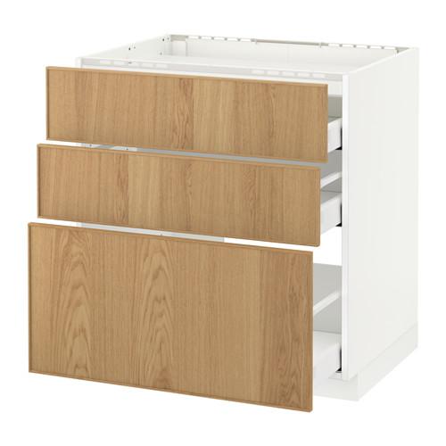 МЕТОД / МАКСИМЕРА Напольн шкаф/3фронт пнл/3ящика - белый, Экестад дуб, 80x60 см