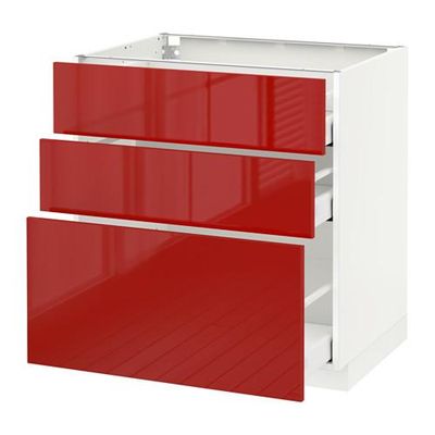 МЕТОД / МАКСИМЕРА Напольный шкаф с 3 ящиками - 80x60 см, Рингульт глянцевый красный, белый