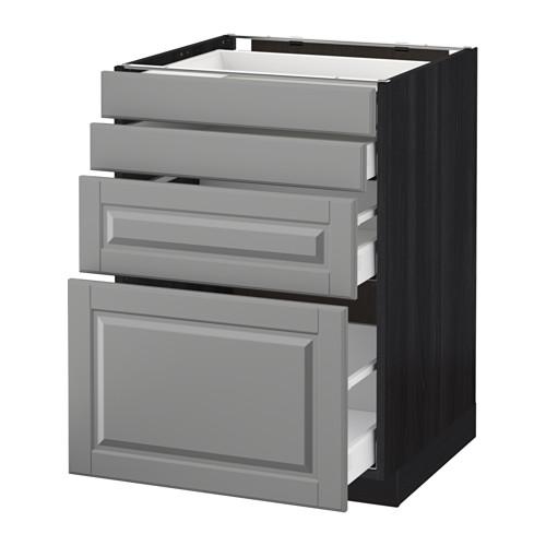 МЕТОД / МАКСИМЕРА Напольн шкаф 4 фронт панели/4 ящика - под дерево черный, Будбин серый, 60x60 см