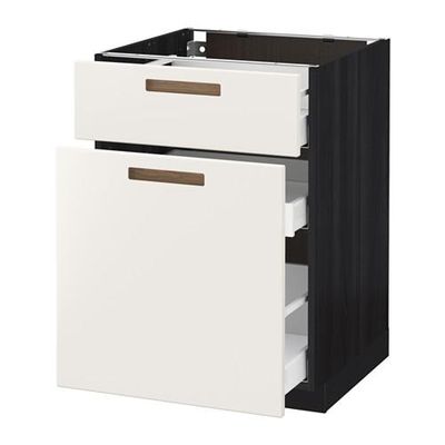 МЕТОД / МАКСИМЕРА Напольн шкаф/выдвижн секц/ящик - 60x60 см, Мэрста белый, под дерево черный