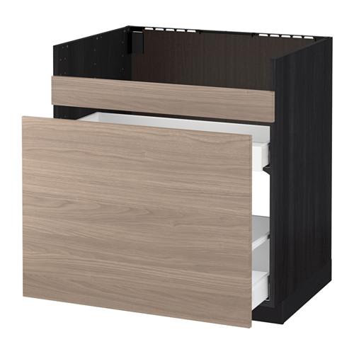МЕТОД / МАКСИМЕРА Нап шкаф п/мойку ДУМШЁ/3фасада/2ящ - 80x60 см, Брокхульт под грецкий орех светло-серый, под дерево черный