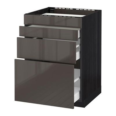 МЕТОД / МАКСИМЕРА Нап шкаф д/духовки/4фасада/3ящика - 60x60 см, Рингульт глянцевый серый, под дерево черный