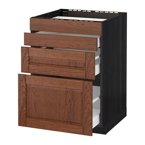 МЕТОД / МАКСИМЕРА Нап шкаф д/духовки/4фасада/3ящика - под дерево черный, Филипстад коричневый, 60x60 см