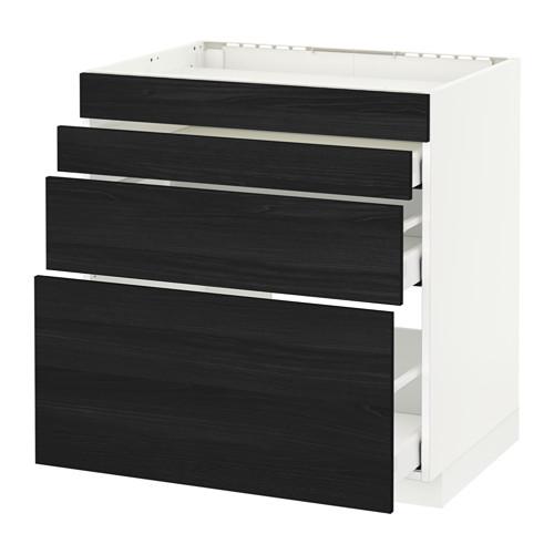 МЕТОД / МАКСИМЕРА Нап шкаф д/духовки/4фасада/3ящика - белый, Тингсрид под дерево черный, 80x60 см