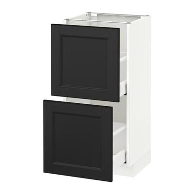 МЕТОД / МАКСИМЕРА Напольный шкаф с 2 ящиками - 40x37 см, Лаксарби черно-коричневый, белый