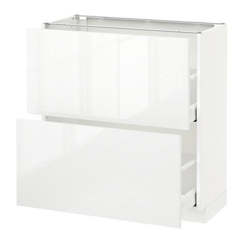 МЕТОД / МАКСИМЕРА Напольный шкаф с 2 ящиками - белый, Рингульт глянцевый белый, 80x37 см