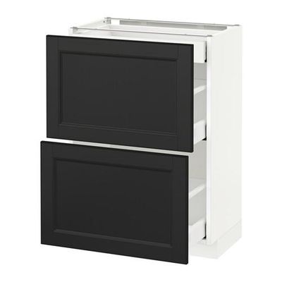 МЕТОД / МАКСИМЕРА Напольный шкаф/2фасада/3ящика - 60x37 см, Лаксарби черно-коричневый, белый