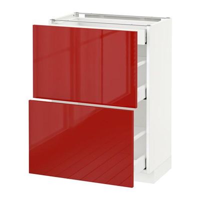 МЕТОД / МАКСИМЕРА Напольный шкаф/2фасада/3ящика - 60x37 см, Рингульт глянцевый красный, белый