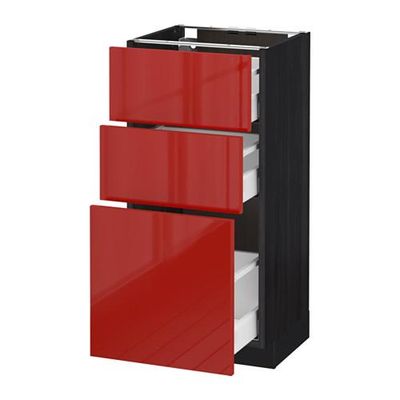 МЕТОД / МАКСИМЕРА Напольный шкаф с 3 ящиками - 40x37 см, Рингульт глянцевый красный, под дерево черный