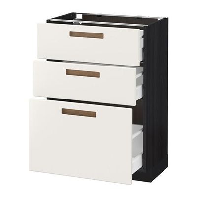 МЕТОД / МАКСИМЕРА Напольный шкаф с 3 ящиками - 60x37 см, Мэрста белый, под дерево черный