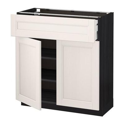 МЕТОД / МАКСИМЕРА Напольный шкаф+ящик/2дверцы - 80x37 см, Лаксарби белый, под дерево черный