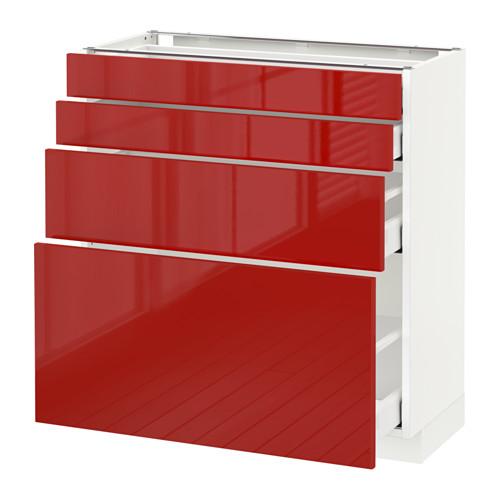 МЕТОД / МАКСИМЕРА Напольн шкаф 4 фронт панели/4 ящика - 80x37 см, Рингульт глянцевый красный, белый