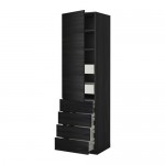 МЕТОД / МАКСИМЕРА Выс шкаф с плк/6 ящк/ дверц/4 фрнт - 40x60x220 см, Рингульт глянцевый кремовый, под дерево черный