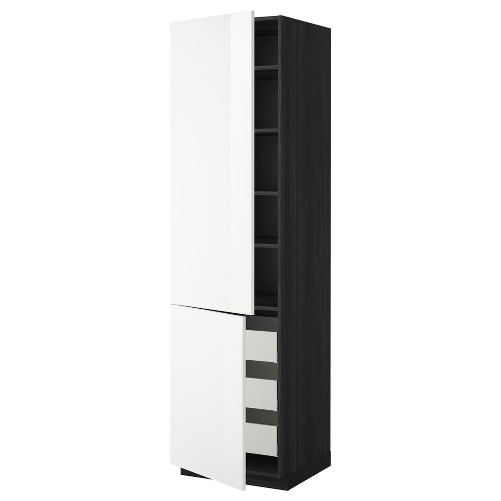 МЕТОД / МАКСИМЕРА Высокий шкаф+полки/3 ящика/2 дверцы - под дерево черный, Рингульт глянцевый белый, 60x60x220 см
