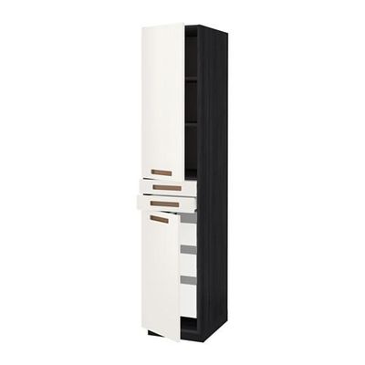 МЕТОД / МАКСИМЕРА Высок шкаф+полки/5ящк/2дверцы/2фрнт - 40x60x200 см, Мэрста белый, под дерево черный