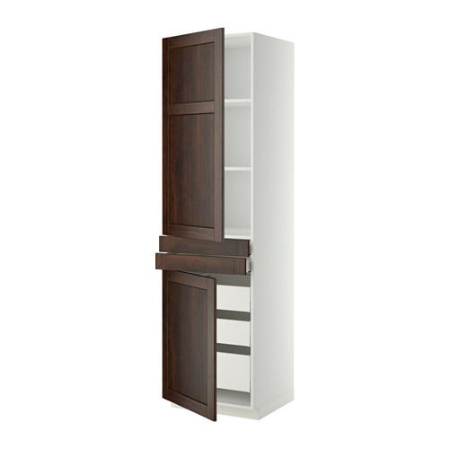 МЕТОД / МАКСИМЕРА Высок шкаф+полки/5ящк/2дверцы/2фрнт - белый, Эдсерум под дерево коричневый, 60x60x220 см