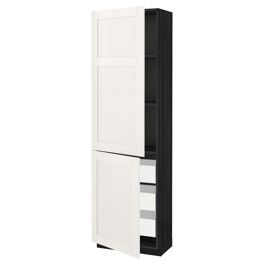 МЕТОД / МАКСИМЕРА Высокий шкаф+полки/3 ящика/2 дверцы - под дерево черный, Сэведаль белый, 60x37x200 см
