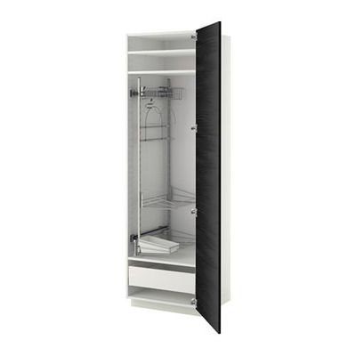 МЕТОД / МАКСИМЕРА Выс шк с отд д/акс д/убрк - 60x60x200 см, Тингсрид под дерево черный, белый